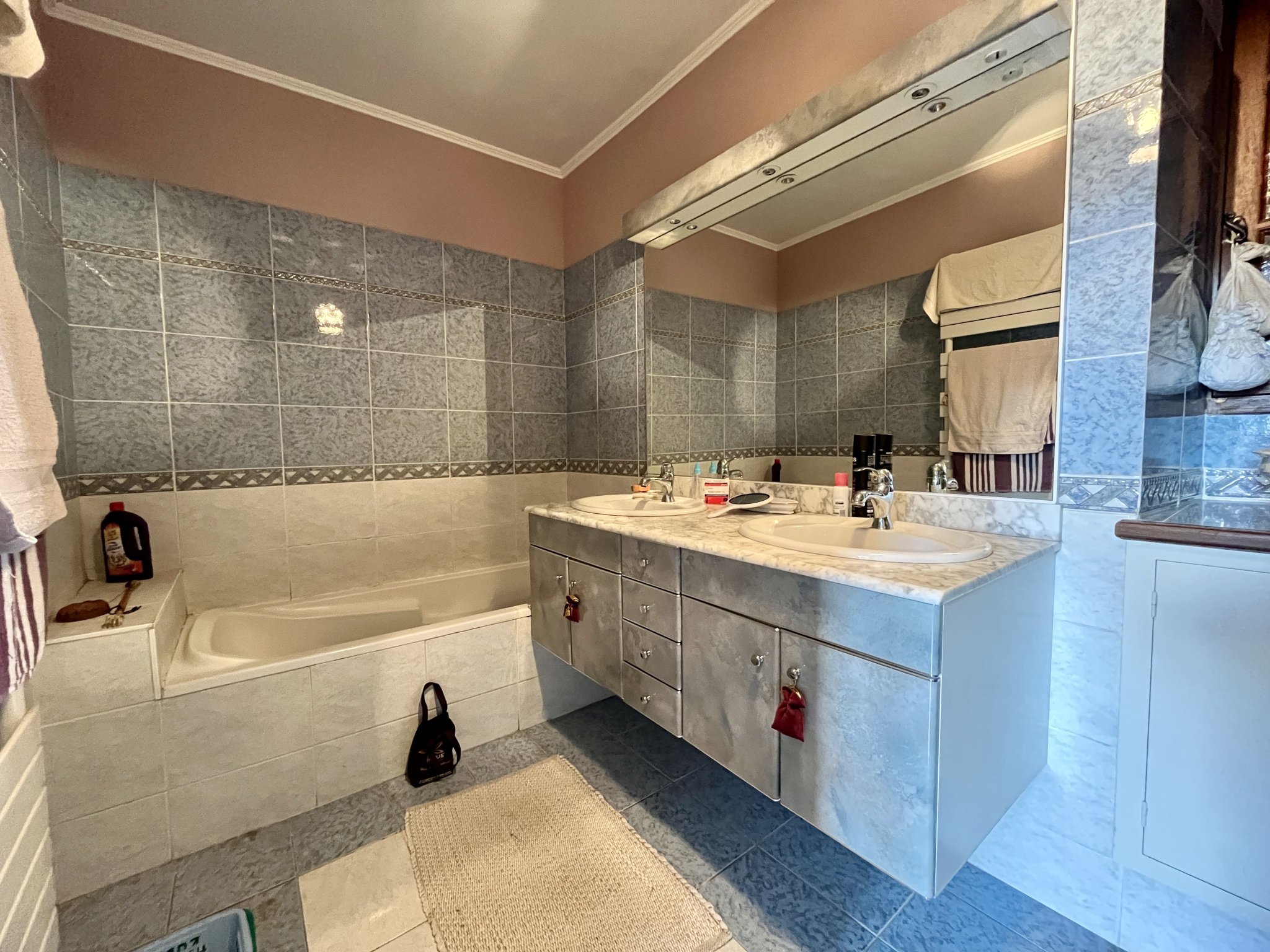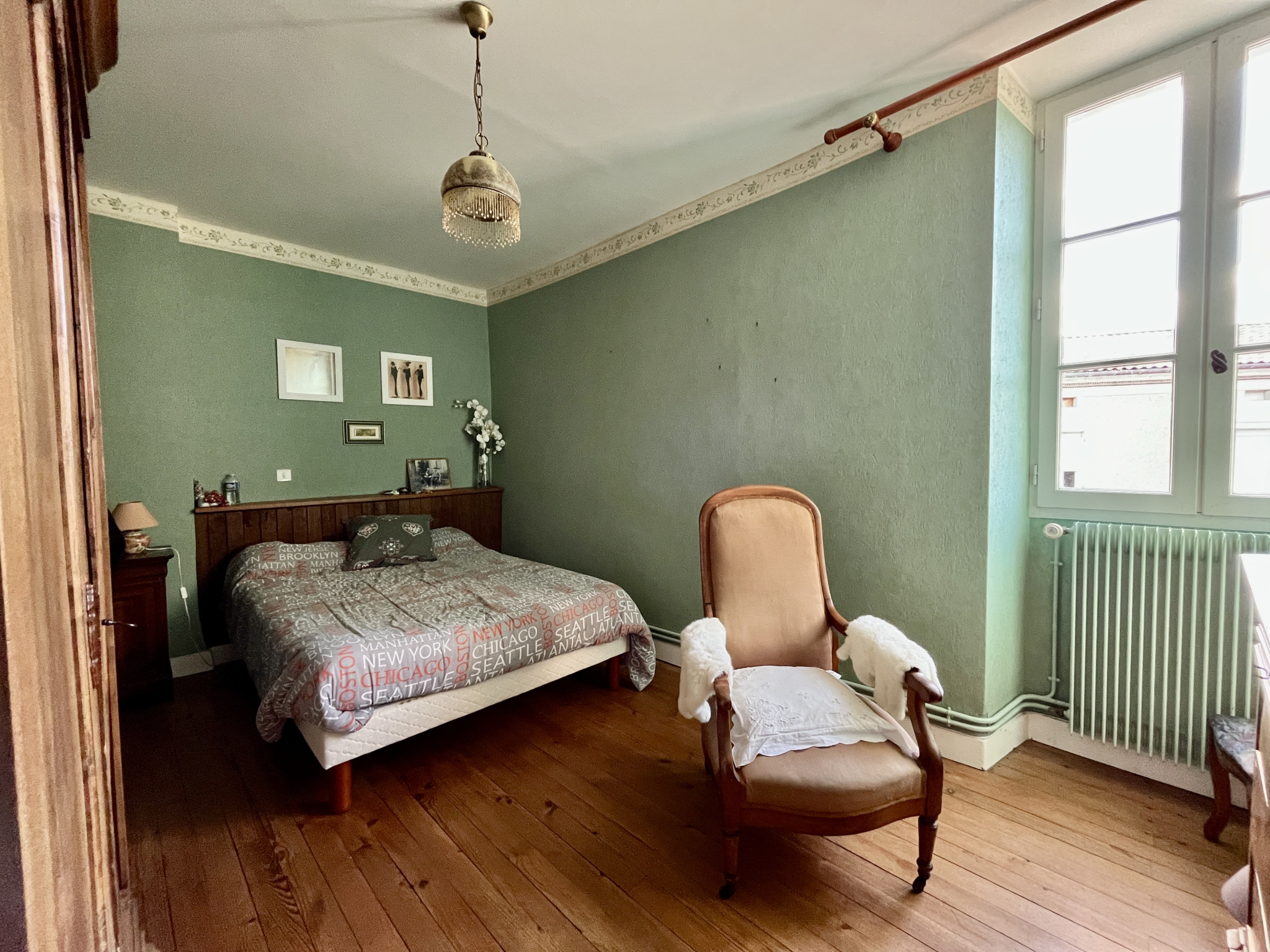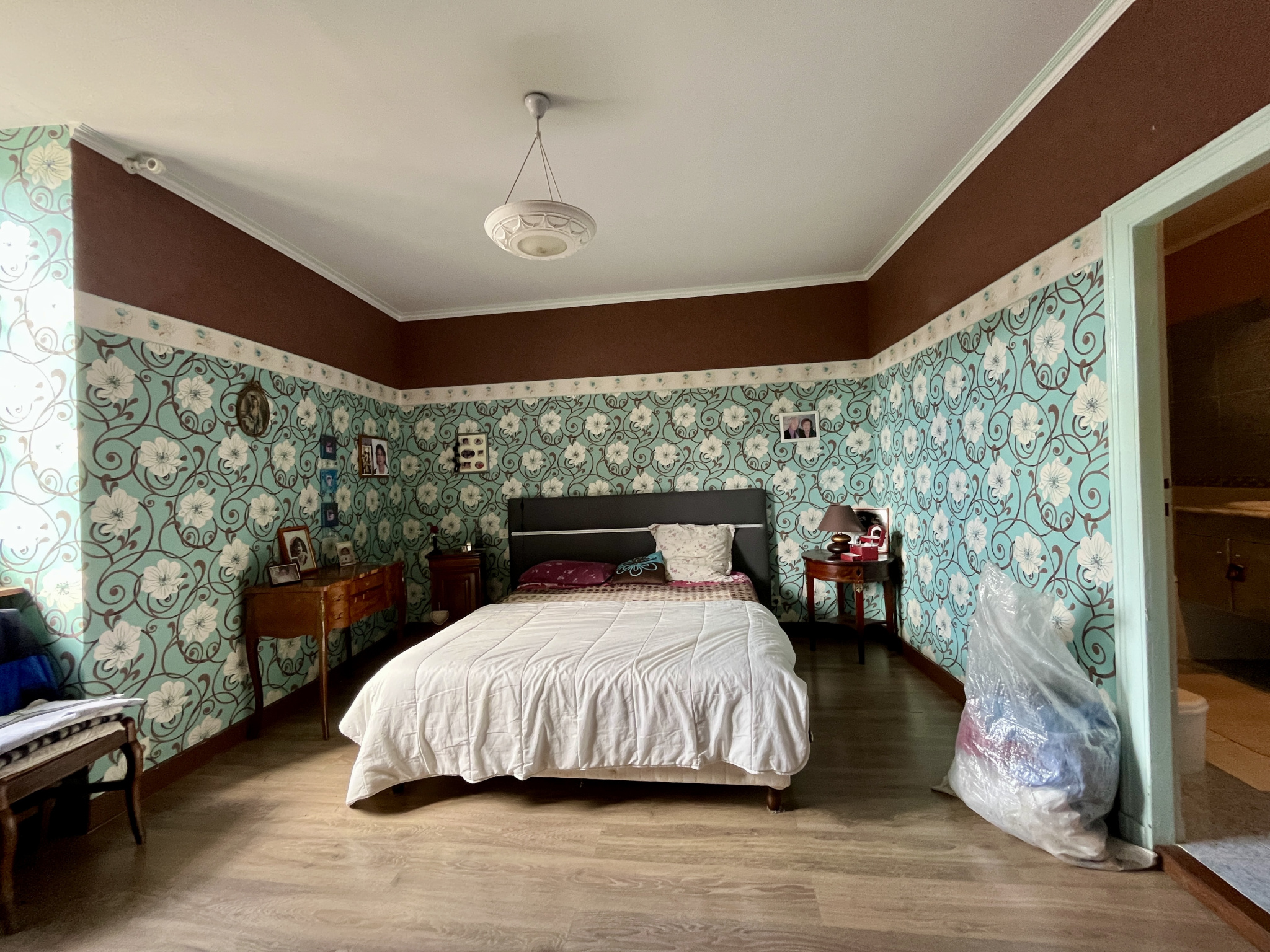 À l'étage, deux espaces distincts : l'un, au-dessus de la cuisine, abrite une vaste pièce sous combles (34 m2 au sol) ; l'autre dessert trois chambres, dont une suite avec sa propre salle de bain et toilettes. Un grenier, encore aménageable, complète l'ensemble.