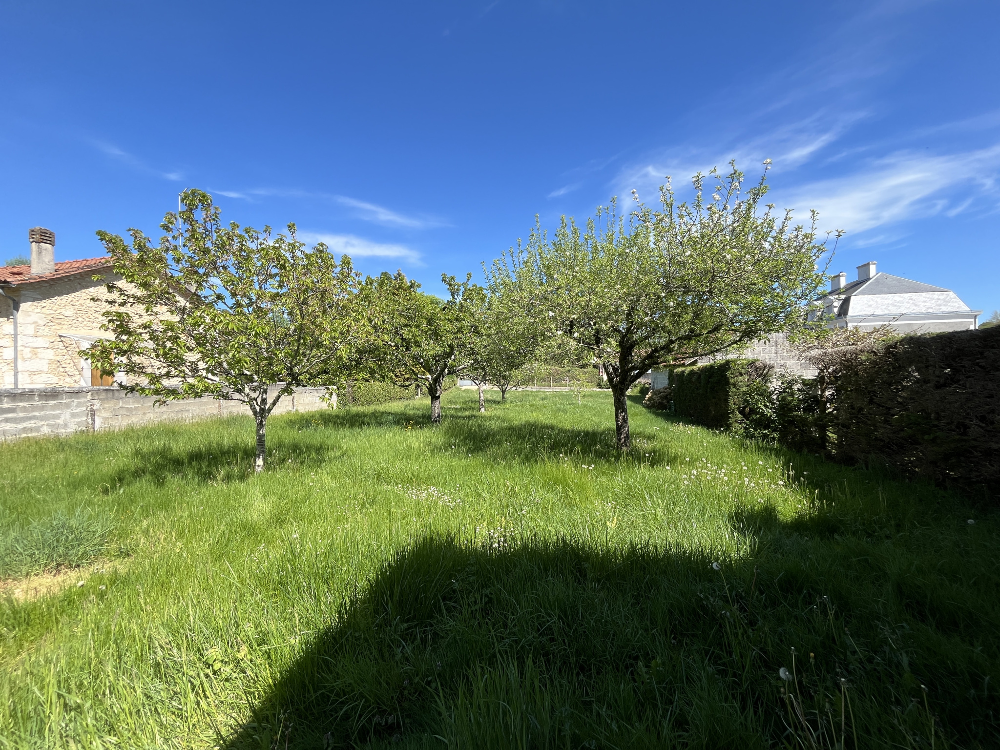 Le tout repose sur un terrain arboré de 2 230 m2, propice au calme, au jardinage ou à de futurs projets.