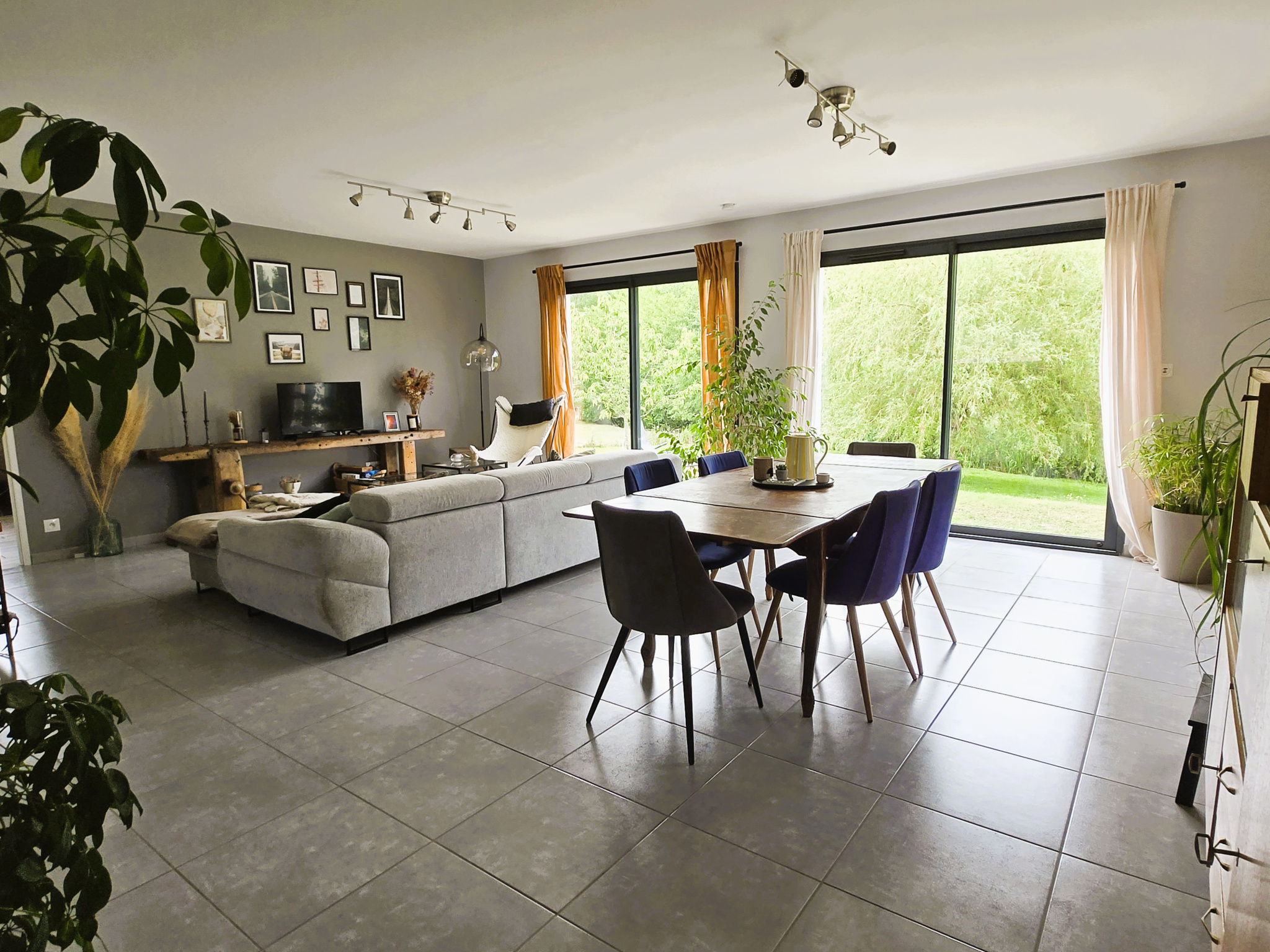 Découvrez cette maison de plain-pied construite en 2018, offrant un cadre de vie agréable proche des commerces et écoles. Elle se compose d'une entrée avec toilettes indépendants, ouvrant sur un espace de vie très lumineux d'environ 44 m2 grâce à ses trois baies vitrées, avec cuisine équipée, cellier-buanderie, une salle d'eau, trois chambres dont une suite parentale avec salle d'eau privative. Le confort est assuré par un chauffage au sol alimenté par pompe à chaleur, garantissant une excellente performance énergétique. À l'extérieur, vous profiterez d'une terrasse couverte avec vue sur un jardin non clos de 1 882 m2, bordé par un ruisseau, + cabanon en bois d'environ 14 m2.