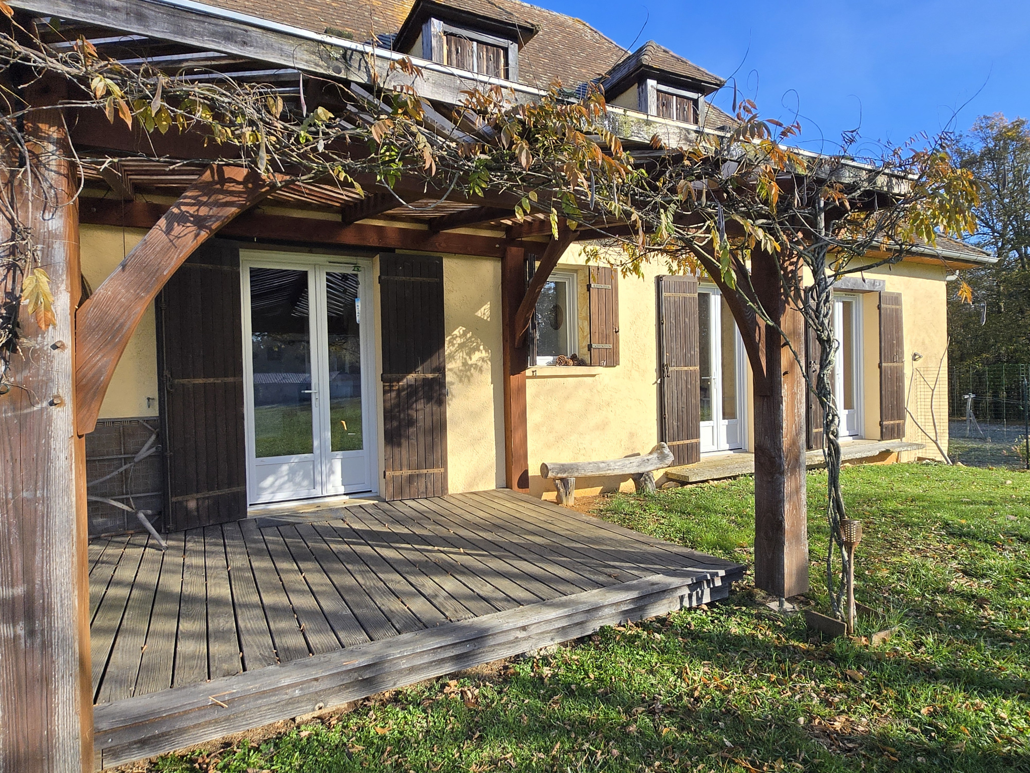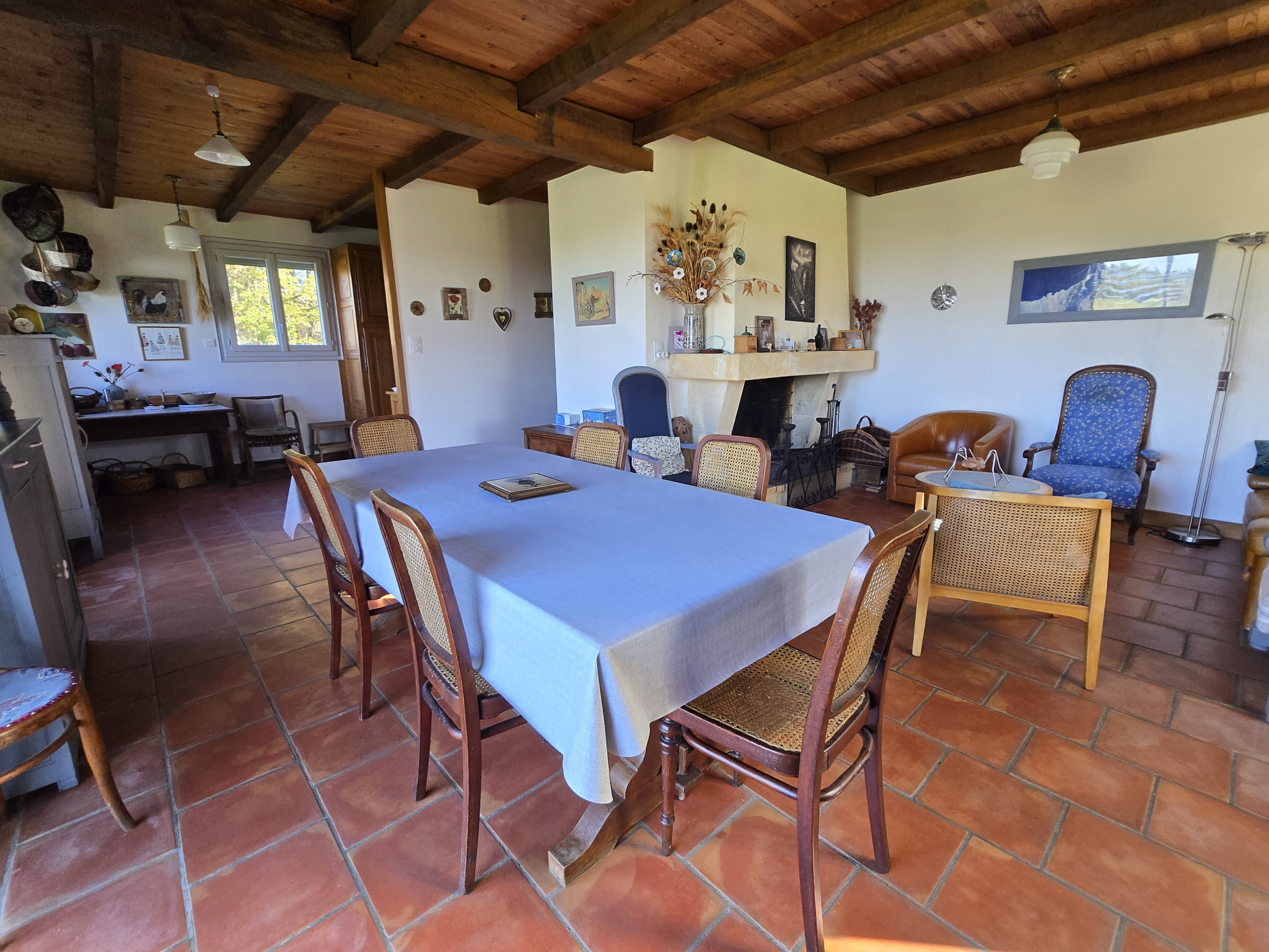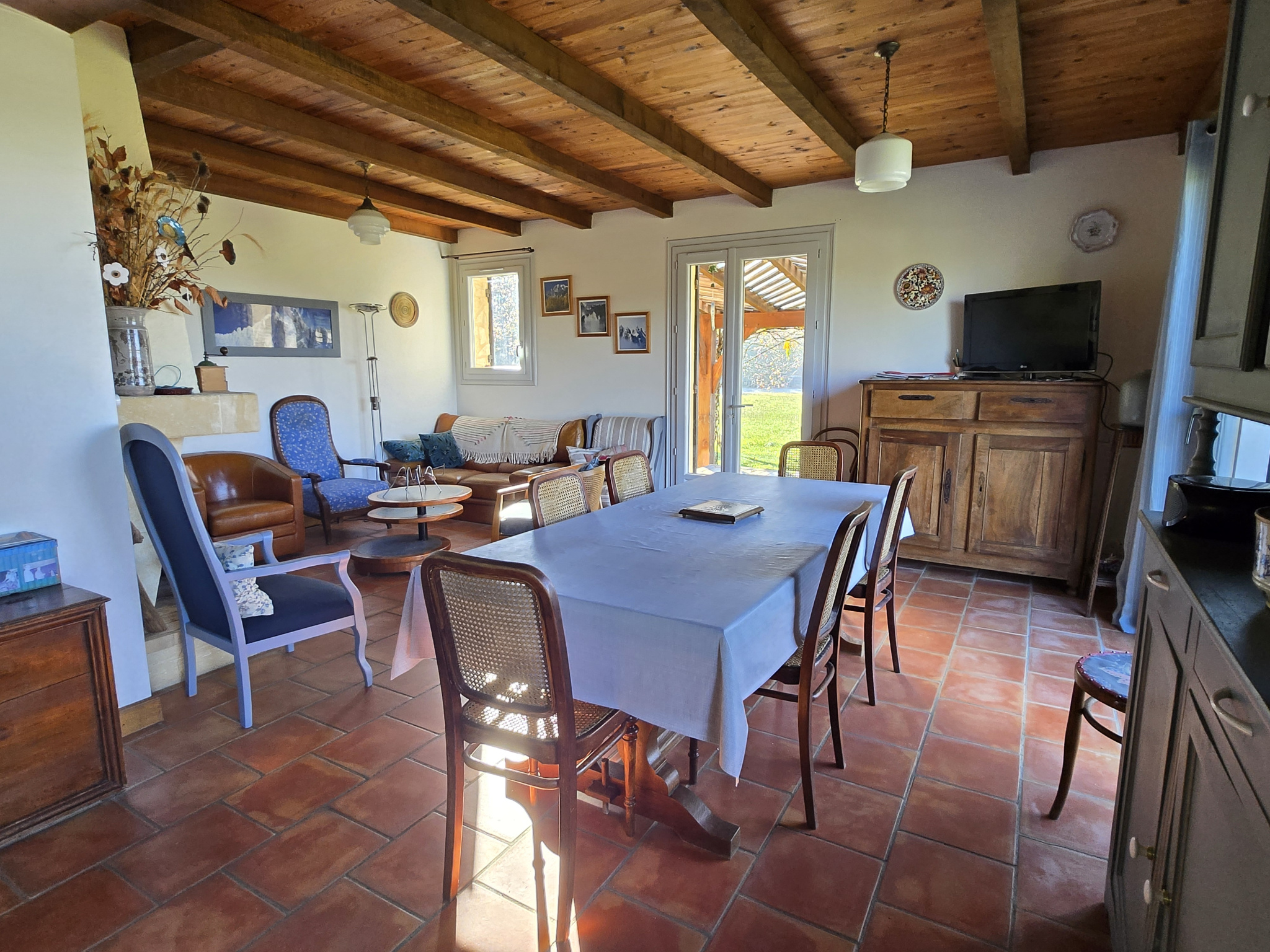 Sur les hauteurs, avec une vue dégagée sur la vallée, découvrez cette charmante maison de construction traditionnelle de type périgourdin, agréable à vivre et pleine de potentiel. Elle offre une partie à vivre de plain-pied comprenant une pièce de vie lumineuse avec cheminée à foyer ouvert donnant sur la terrasse couverte et un espace cuisine aménagé, trois chambres avec placard et une salle de bains. Le grenier, accessible par un escalier, pourra grâce à son volume être aménagé selon vos envies pour agrandir l'espace habitable. Vous disposez d'un sous-sol semi enterré avec un vaste garage de 52 m2, une cave ainsi qu'un studio indépendant à rafraîchir, disposant de sa propre salle d'eau avec toilettes. Actuellement, la maison est chauffée au bois, avec une cheminée à foyer ouvert et une cuisinière à bois. Pour en faire une habitation principale, il faudra prévoir l'installation d'un chauffage central.